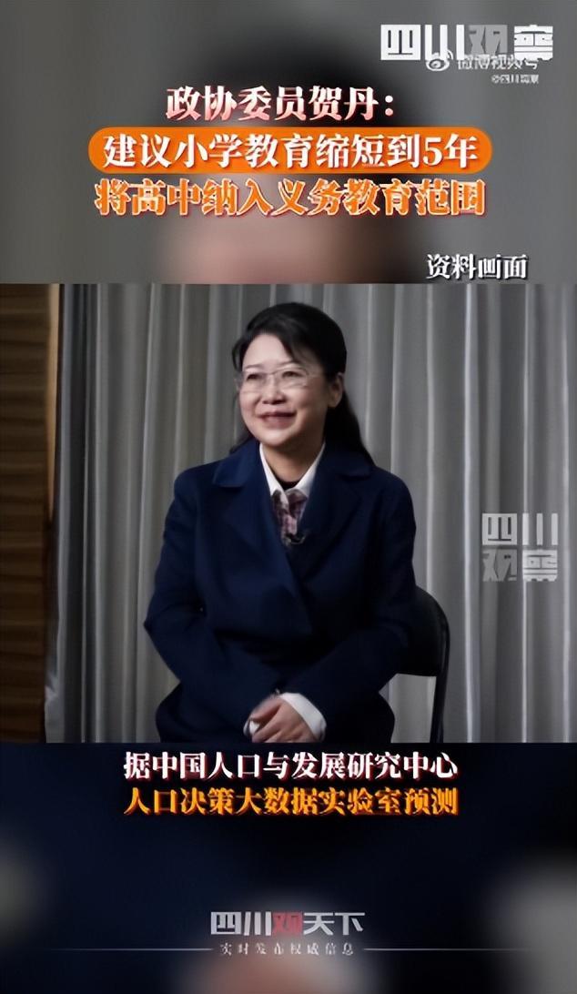 2月25日,全国政协委员、中国人口与发展研究中心主任贺丹在接受采访时表示,根据中国人口与发展研究中心人口决策大数据实验室预测,到2035年,我国0—17岁低龄人口存量将比2020年减少1亿人,届时教育资源支出会发生很大的结构性变化。优化教育资源配置,需要前瞻性考虑人口变动的趋势。建议小学教育缩短到5年,将高中纳入义务教育范围。