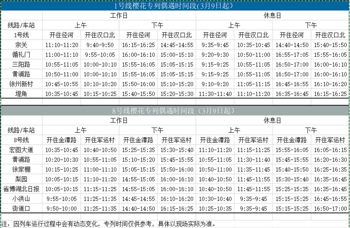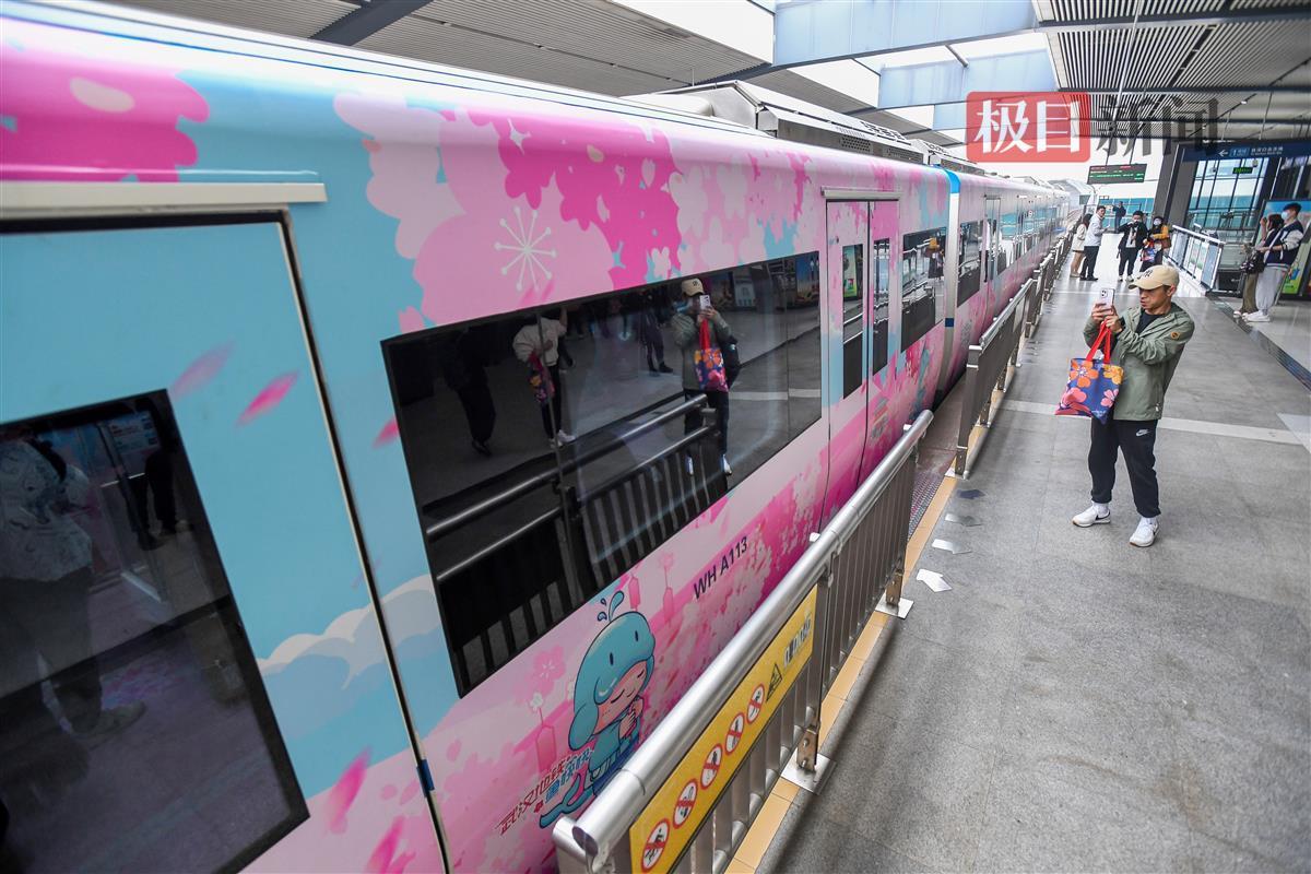 武汉“樱花地铁专列”将一直持续运营至4月30日,感兴趣的乘客,可根据已公布的站点专列停靠时间段前往打卡。