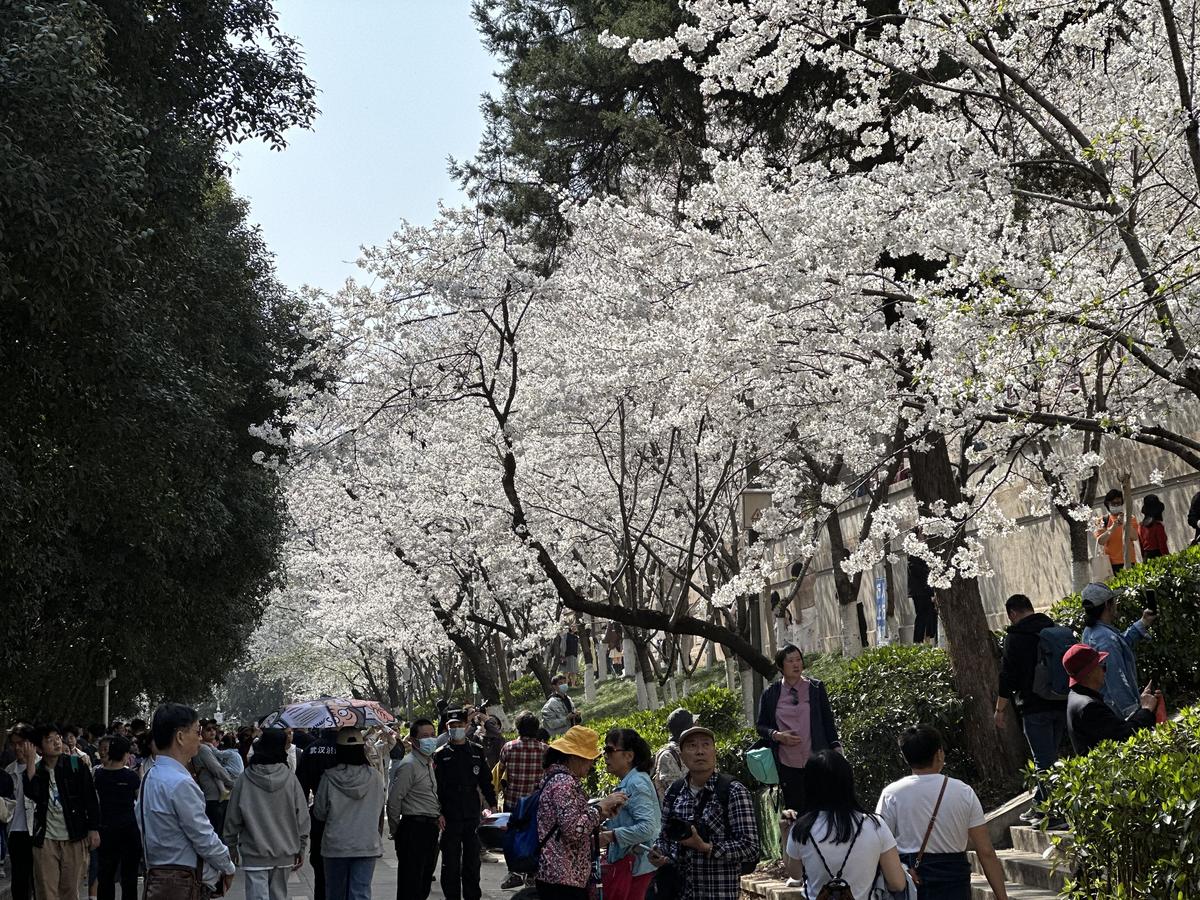 湖北日报讯(记者田佩雯、通讯员吴江龙)3月15日,春意正浓,武汉大学樱花盛放。首批预约游客约1.5万人来到珞珈山下,在唯美的樱花树下,享受美好春日时光。