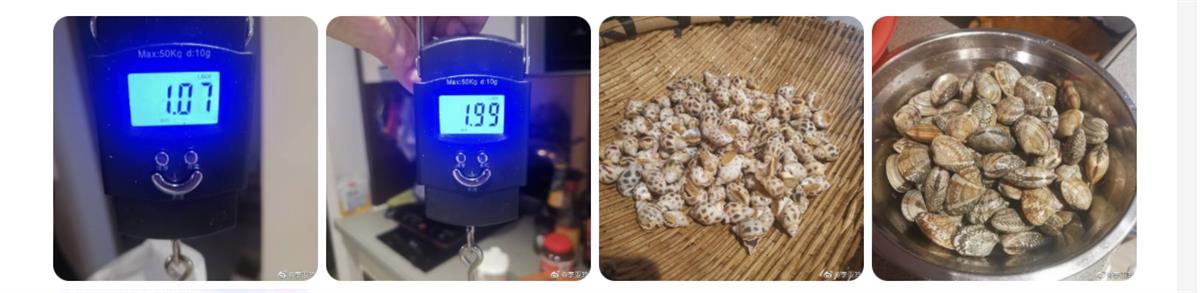 李亚玲表示,她购买了30元一斤的小号花螺,摊主称有1.7斤,但自己用手拎感觉差太远,将水沥干后,拿到公平秤上有1.6斤,等到她回家用家中的电子秤称重却发现,购买的花螺仅有1.07斤。此外,在摊贩处称重有3斤重的花甲,回家称也只有1.99斤。她猜测就连公平秤也被动了手脚。