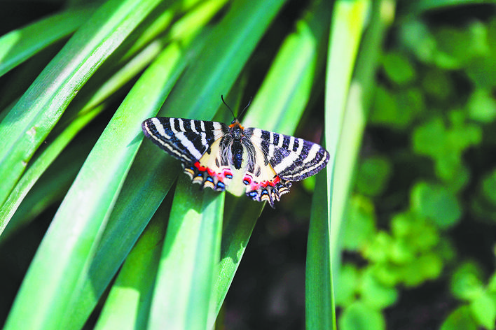 只见一只绿黑条纹相间的蝴蝶停在一棵紫荆上。“这里有一只柑橘凤蝶,因为它在幼虫状态时喜爱吃芸香科植物的叶片,所以得此名。”一路走着,专家们一路向大家介绍着。