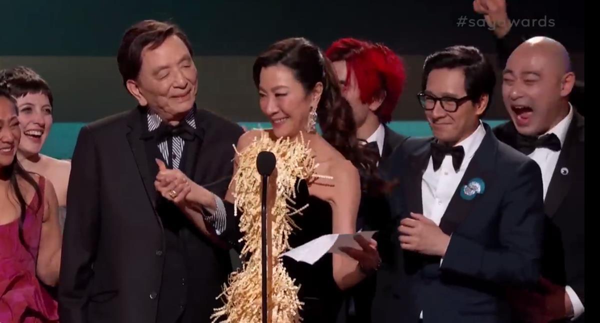 今年2月底,2023年美国演员工会奖获奖名单揭晓,电影《瞬息全宇宙》成最大赢家,囊括了电影类最佳群戏、最佳女主角、最佳男配角和最佳女配角4项表演大奖。