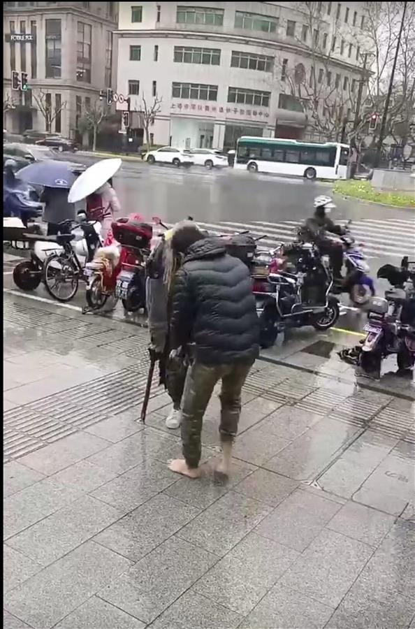 下着雨的上海市徐汇区肇嘉浜路路口,一位披头散发光着脚的流浪老人正站在雨中,一名小伙脱下自己的鞋为老人穿上。上述视频感动了众多网友,大家纷纷给这位热心善良的小伙点赞。3月18日,上海市救助管理站在接到极目新闻记者反映后,派工作人员到现场找到了视频中的流浪老人,但其不愿意接受救助管理,此前他们曾多次给送给老人鞋子。