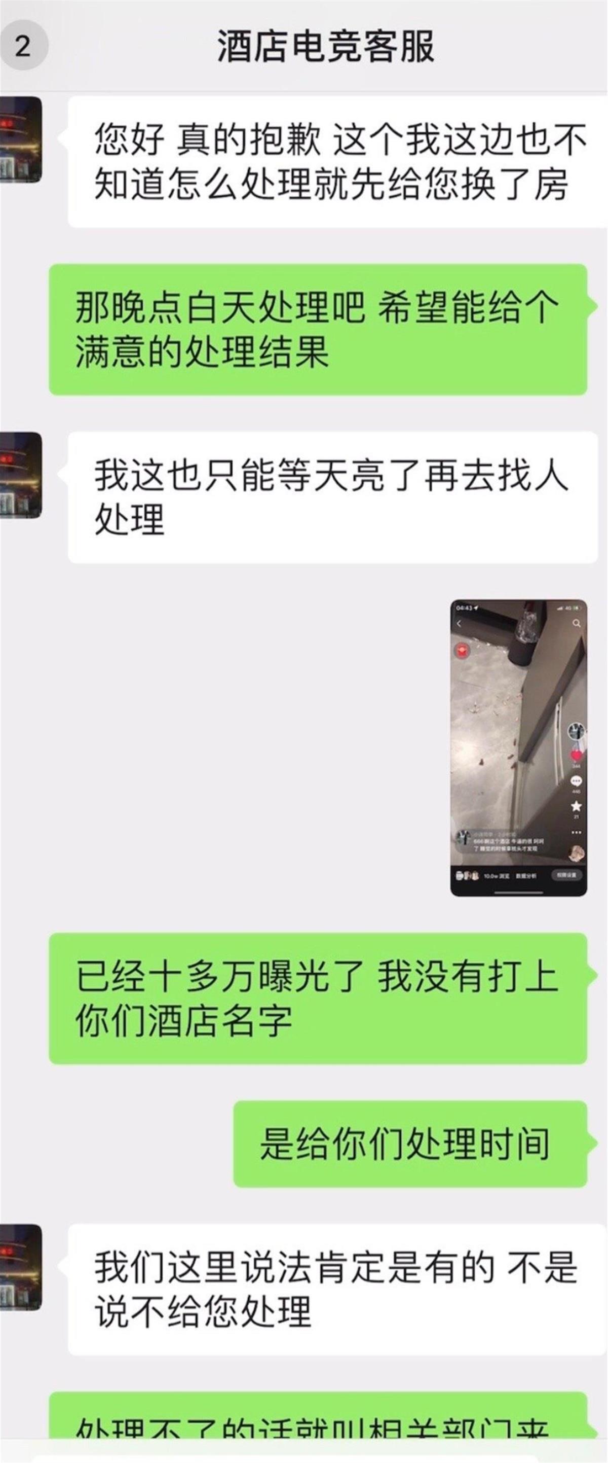 事发当晚,陈先生第一时间将上述情况反映给了酒店方。陈先生说,当晚店方工作人员给他换了一间房。