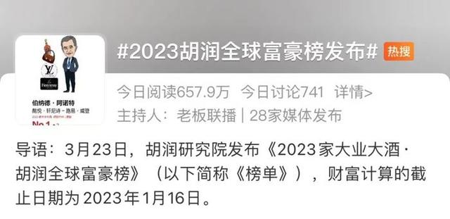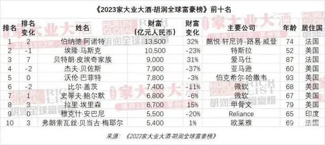3月23日,胡润研究院发布《2023胡润全球富豪榜》,中国上榜企业家仍占据全球第一。农夫山泉创始人钟睒睒以4650亿元的身价蝉联中国首富,全球第15位,而马化腾、张一鸣排名二、三位。