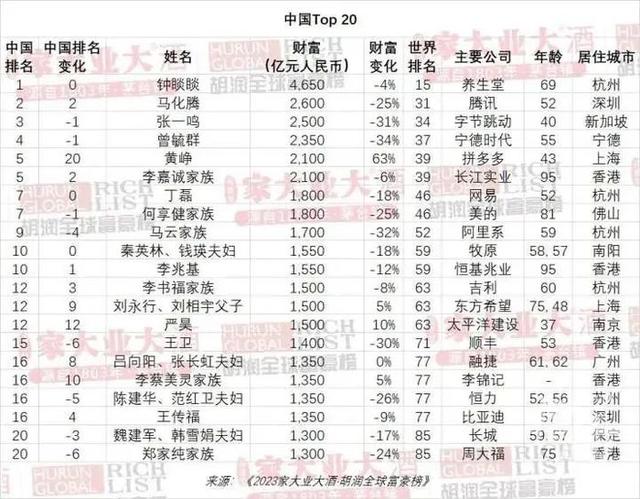 69岁的钟睒睒财富下降4%,至4,650亿元,蝉联中国首富,全球第15位,与去年保持一致。