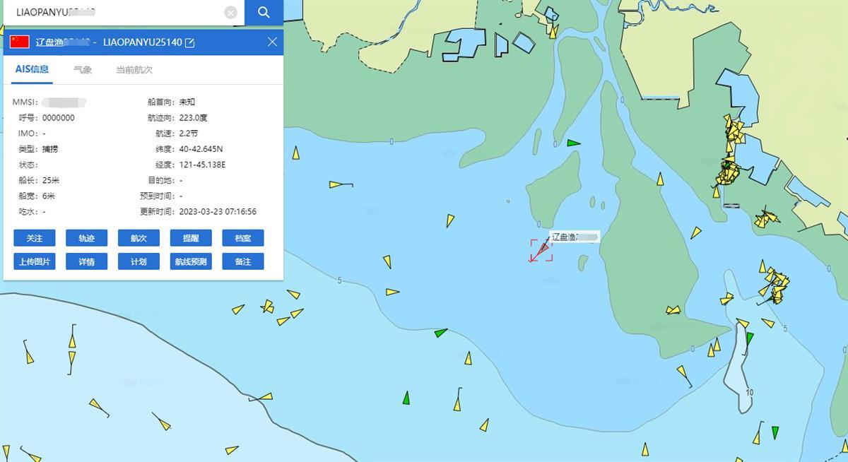 记者查询“船讯网”发现,该网友所说的渔船船长25米,宽6米,船只动态最后更新时间为3月23日上午7时许,坐标停在一处海域。