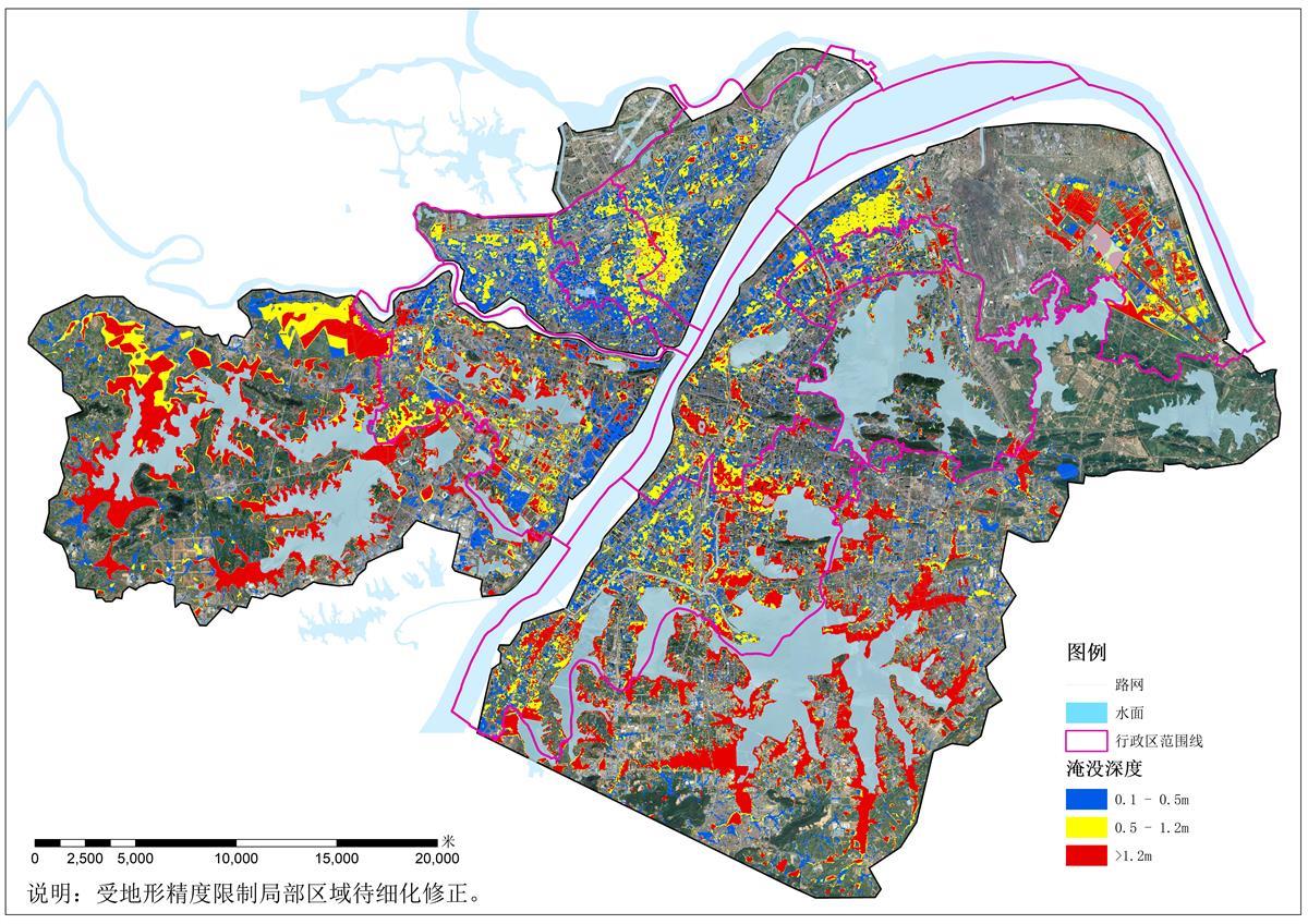 武汉中心城区模拟“郑州7·20降雨”淹没图
