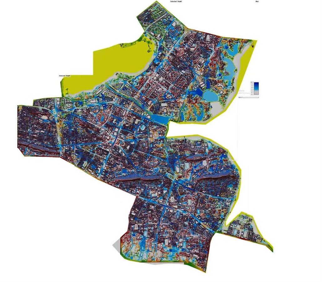 符韵表示,在东沙湖流域洪涝预报预警模型的基础上,通过采用1米×1米的激光雷达点云数据细化了水果湖、茶港片区的模型。“该模型的构建区别于城市水系大尺度内涝风险的识别,实现了城市敏感区细化至建筑边界、道路区间的内涝风险识别技术的突破;并为静候细化研究坡面流速、渍涝深度组合对于行人、车辆的定量研究提供了数据支撑;为渍涝点的精准预防、行泄通道的组织提供了依据。”