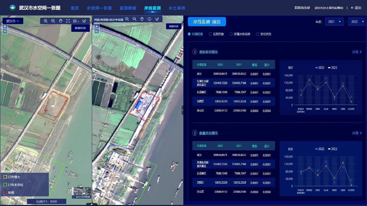 但在远郊的深山老林内,人工巡湖通常很难覆盖,此时,基于高分辨率遥感的河湖岸线智能分析模型就派上了用场,不但成为无人巡查湖泊的守护者,对于有人巡查的湖泊,也成为河湖长巡湖的得力助手。