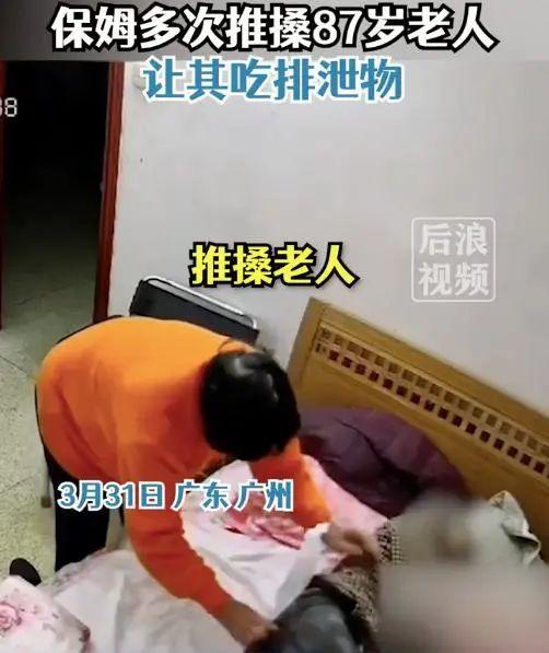 据了解,3月31日,广州潘女士给87岁的母亲花钱请了一位保姆,在给母亲换尿不湿的时候,由于老人身体原因,在床上失禁,这时候保姆直接推搡老人,并且让老人拿起自己的排泄物放在嘴里吃。