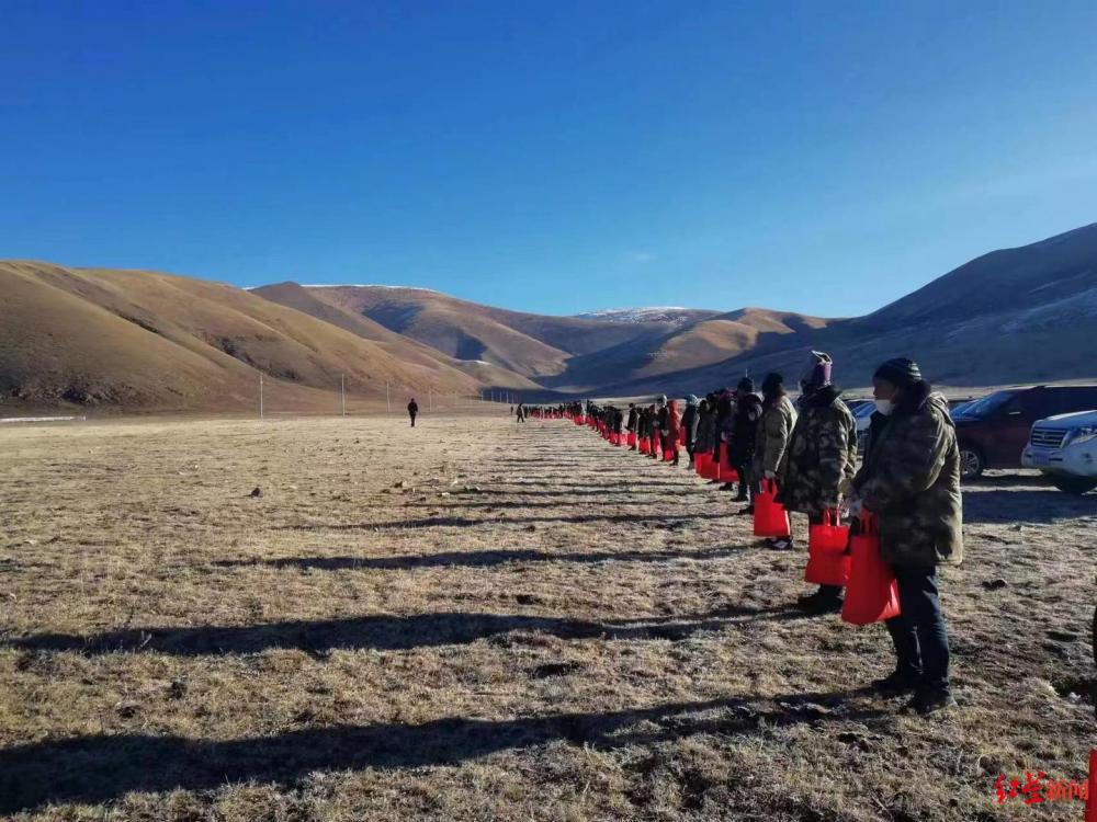 “灭鼠要赶在春天土壤解冻、草长起来以前完成。”从2022年11月到今年1月底,石渠县林草局草原站带着数百人在草原上灭鼠,灭鼠队分成多组,整齐地站成一排,然后按口令沿着草地走过去,发现鼠洞便投下拌有生物药剂的饵料。这一轮结束后,3月至4月底还将进行一轮投饵。
