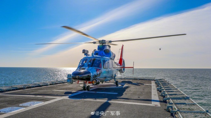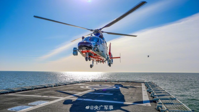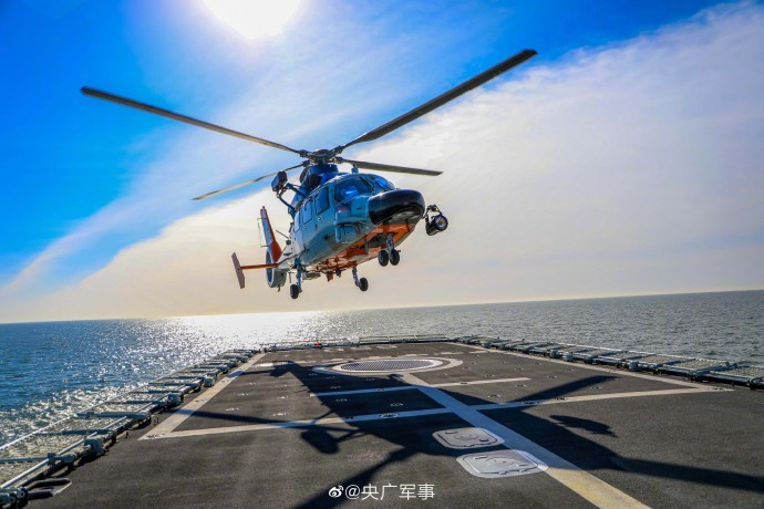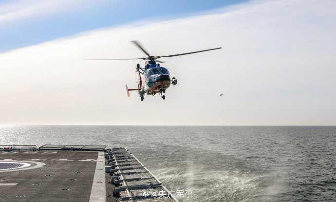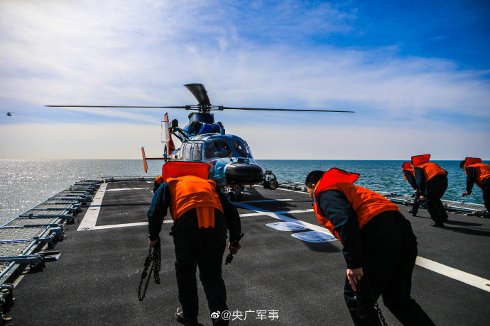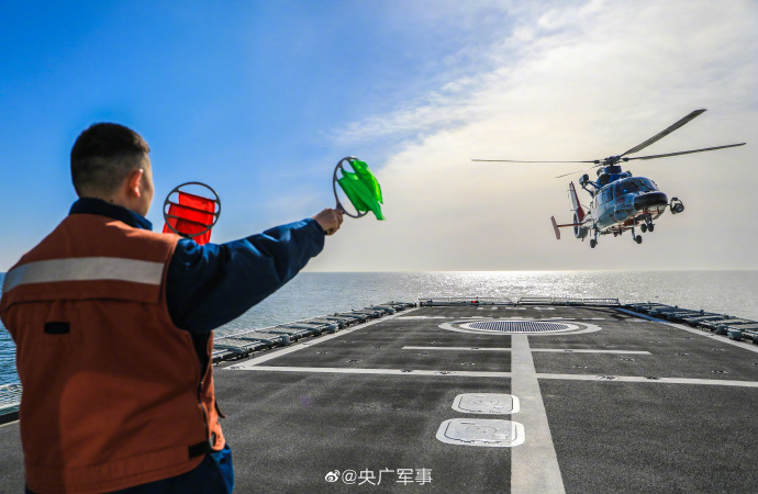 近日,北部战区海军某舰载直升机部队联合北部战区海军某护卫舰支队,在渤海某海域开展舰机协同起降训练,充分利用海上复杂条件,通过连续不间断海上训练,检验飞行员技战术水平。