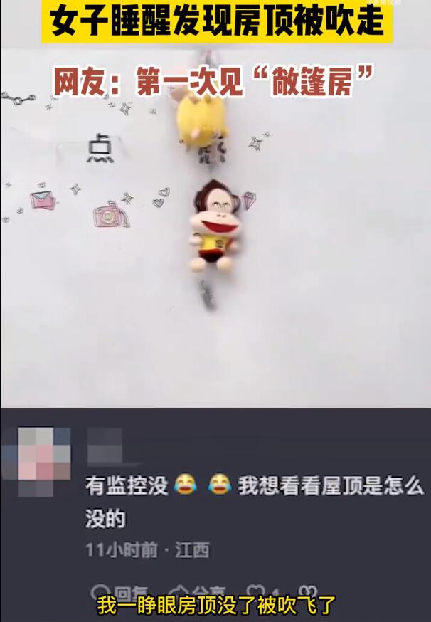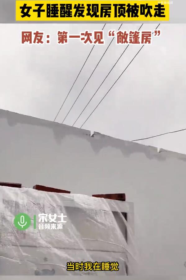 据@麦穗视频 报道,4月3日,安徽淮北。女子一觉醒来屋顶被风吹走。视频发布者宋女士表示:自己当时在睡觉,睁眼看见房顶被风吹没了,正在下雨,自己家的房顶是铁皮,预计损失五千左右,以后再也不住这种房子了。