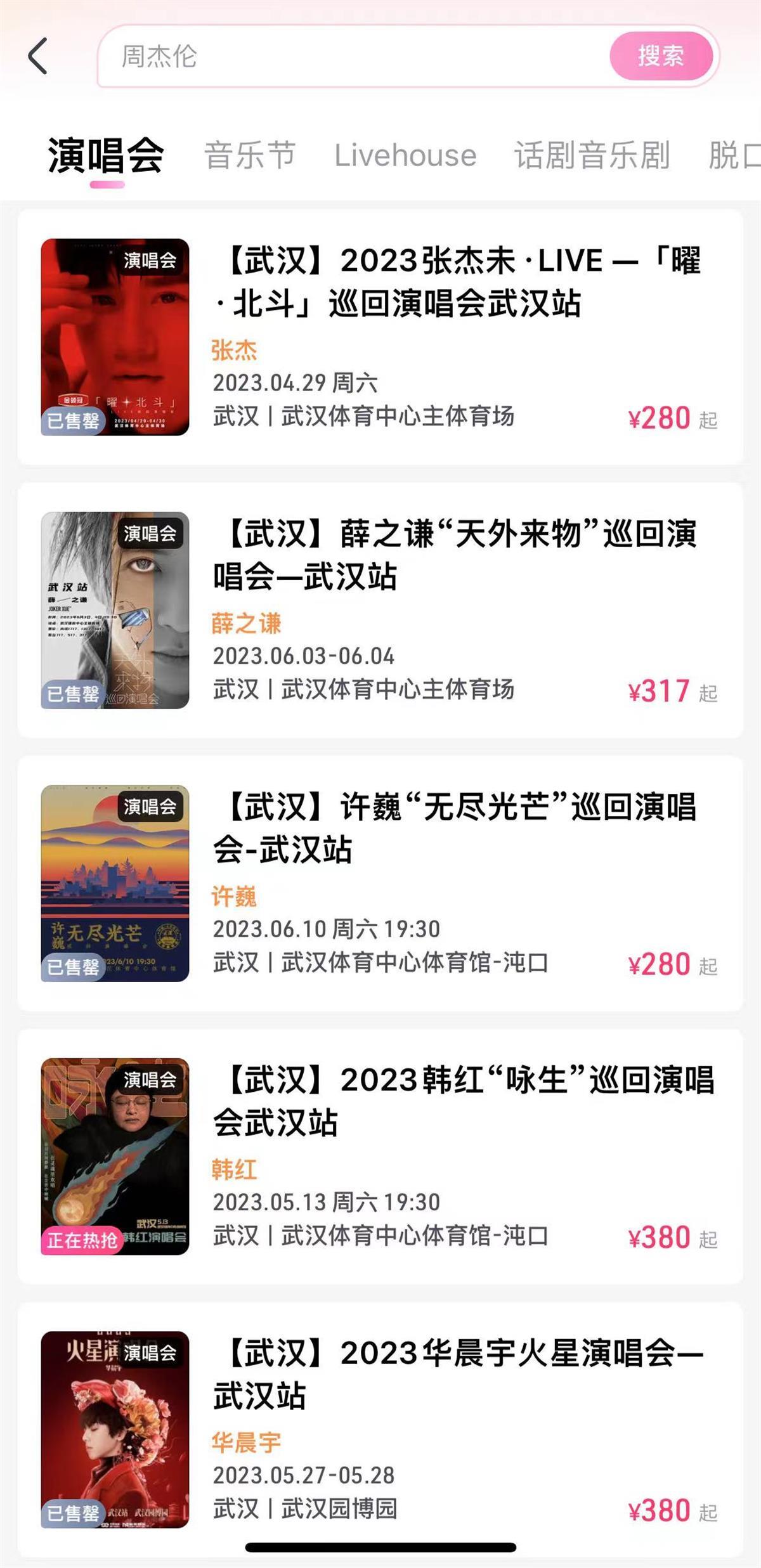 而这,只是今年武汉演唱会市场的开始。据不完全统计,目前已有韩红、任贤齐、刘若英、许巍、黄绮珊、周传雄、张杰、薛之谦、华晨宇、周柏豪等艺人已开售巡回演唱会武汉站门票。