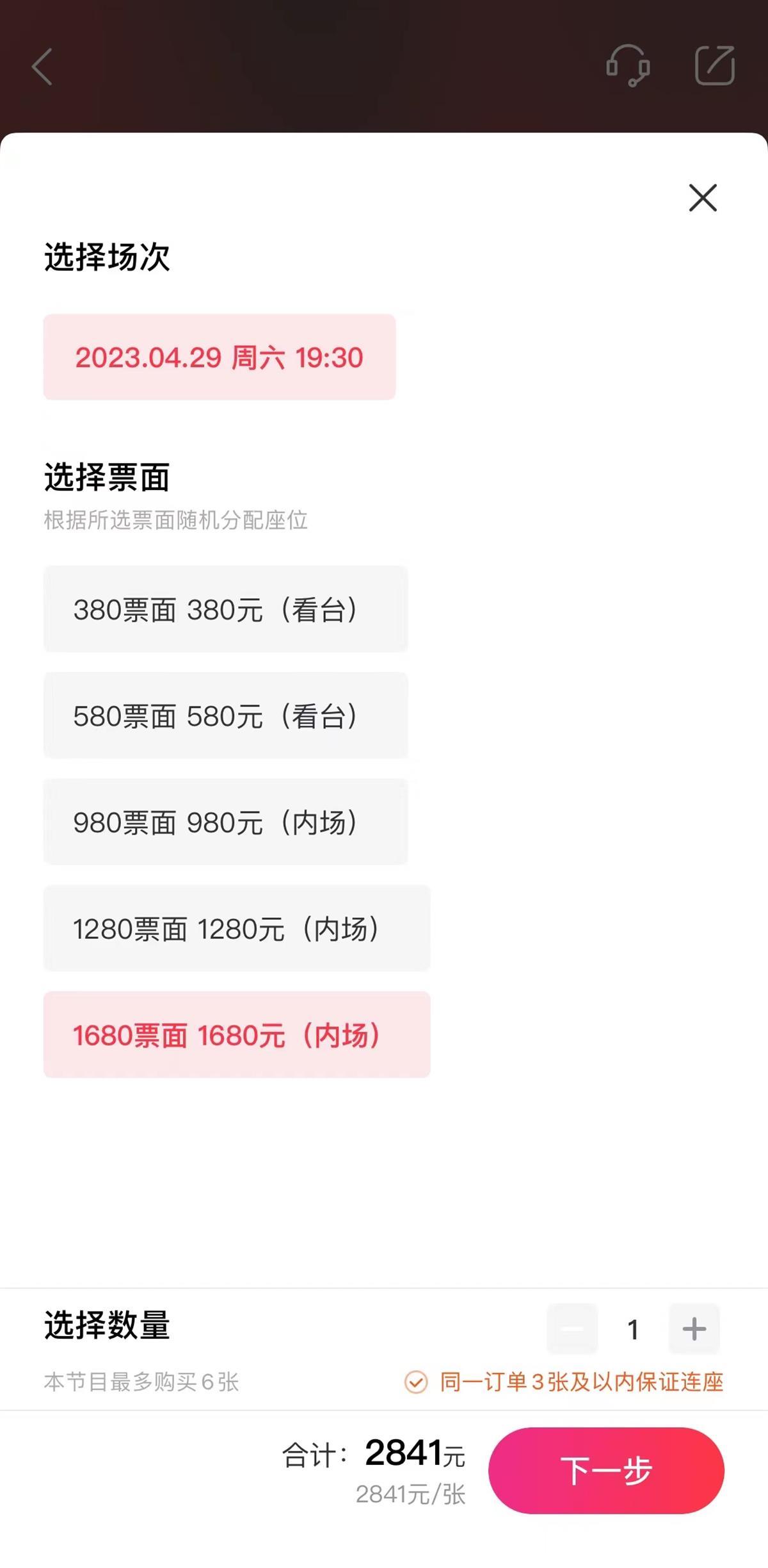 例如票面价1317元、1717元的薛之谦演唱会武汉站内场门票,二手平台上有卖家分别以1800元、2350元的价格出售。“这个价格只支持随机座位,要想选座的话还要再加。”该卖家称,如果想选离舞台更近的前十排座位,票面价1717元的内场门票则需要至少4000元,“离得越近、越靠正中间的位置越贵”。