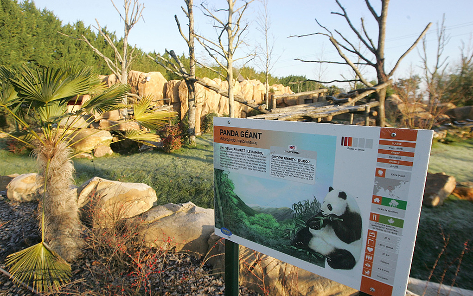 当地时间2012年1月15日,法国圣艾尼昂市博瓦勒动物园为大熊猫“欢欢”和“圆仔”的到来,专门建造的熊猫展台。视觉中国资料图