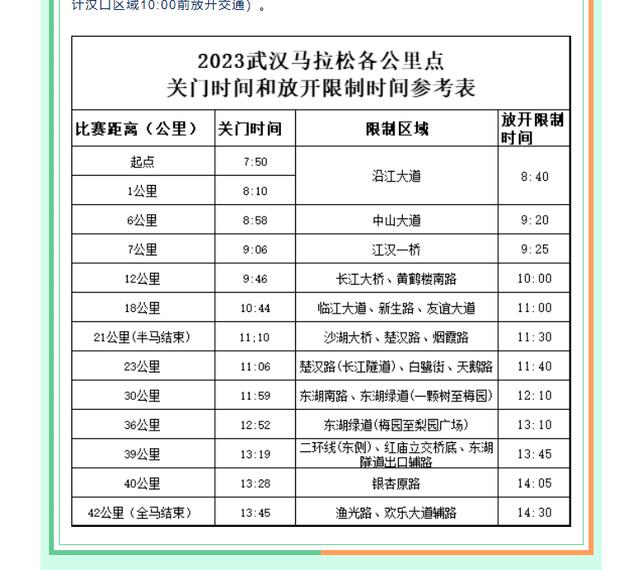 根据之前“汉马”比赛情况,16日比赛开始以后,预计各点位开放交通时间节点(预计汉口区域10:00前放开交通)。