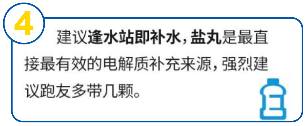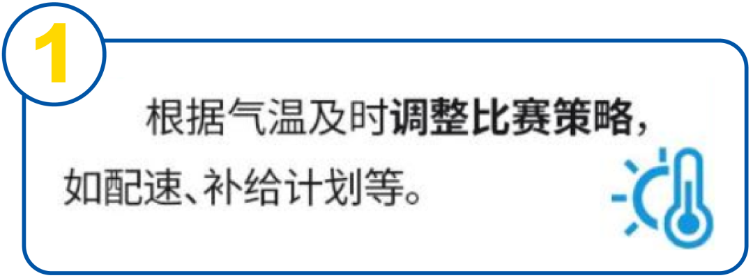 在可完成比赛的情况下,合理饮用运动饮料补充水分、电解质及能量,预防体渴,将身体状况调整至最佳。