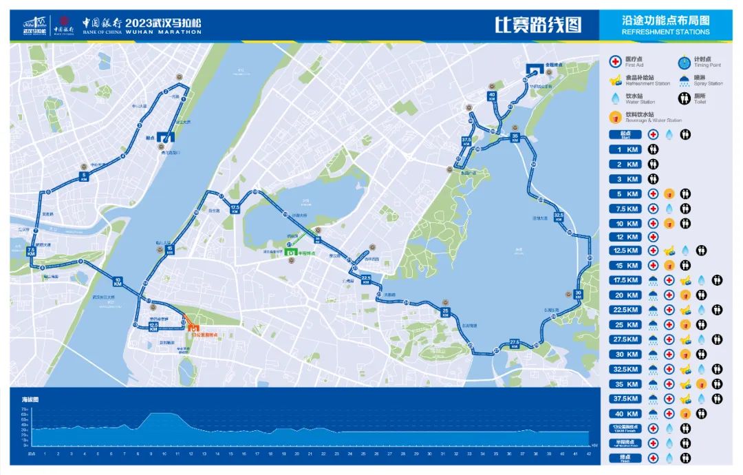 到达起点时间:由于参赛选手众多且本次赛事实行严格安检,为了便于您及时存衣、热身和如厕,请您至少提前一个小时携带2023武汉马拉松赛事号码布和手环,到达起点接受安检。