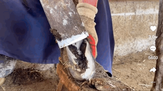 手法熟练的修蹄师傅先用“大号指甲钳”干净利落地把过长的驴蹄剪掉,再用锋利的金刚铲挨个削平。一声声清脆的切蹄声,一个个腐烂、过长的驴蹄子被修得整齐、漂亮、方便行走,小毛驴开心得满地打滚。对于很多人来说,每看一条修蹄子的视频,就有一只小驴重获双腿,身轻如燕,四舍五入“我又救了一头驴”。