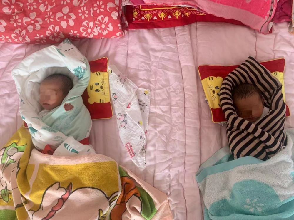 据王海涛介绍,在怀孕第八个月的下旬,妻子就出现手脚浮肿、高血压的情况,而且两个孩子长得比较快,妻子的心脏也被严重挤压。“当时在我们任丘的医院,医生就建议住院观察,先降血压,吸一天氧,但她没医保,怕花钱就没住院。而且医生也建议尽早剖腹产,但她为了让孩子出生健康,不用早产进保温箱,希望怀到足月,就继续坚持妊娠了。因为如果进保温箱花费也会比较高。之前在怀孕4个月的时候,产检还比较好,医生也说过能足月,她就一直以为可以怀到足月。”