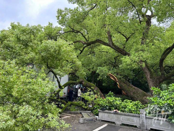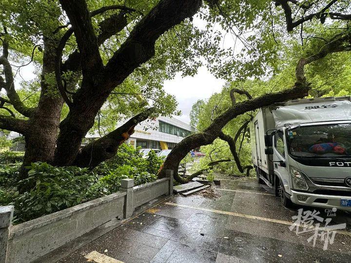 今天上午,橙友“泥鳅太滑”在橙柿互动App橙友圈发帖:“西湖边,青少年宫门口,一棵510年的香樟断了。”