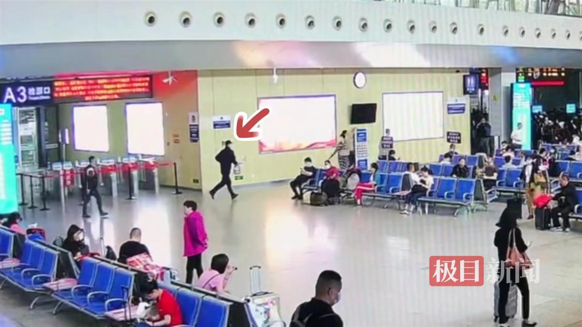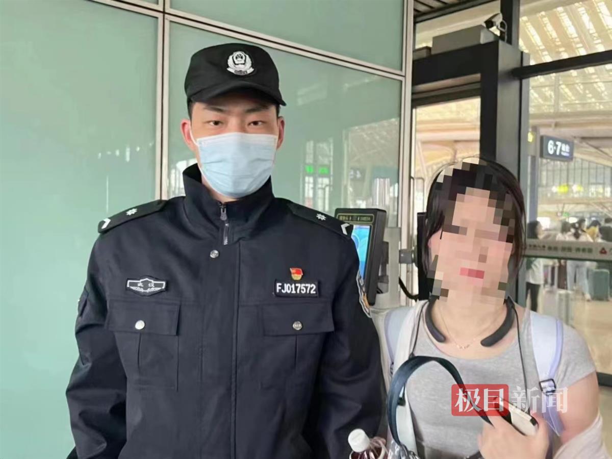 为了及时将失物送还程女士,民警与其视频核对无误后,立即安排辅警罗守帅迅速前往A2检票口。此时,离程女士登车的时间仅有5分钟,罗守帅从地铁站一路狂奔至火车站,终于赶到A2检票口将失物送还到程女士的手中。