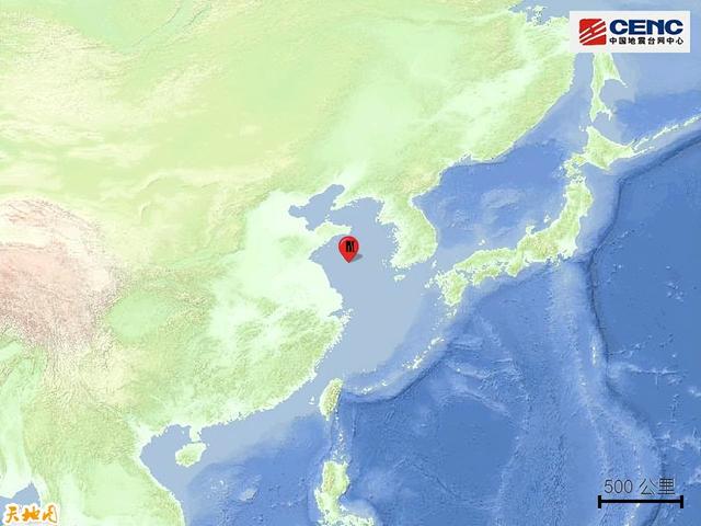 中国地震台网正式测定:04月25日23时34分在黄海海域(北纬34.54度,东经122.68度)发生4.8级地震,震源深度10千米。