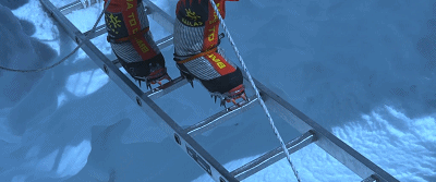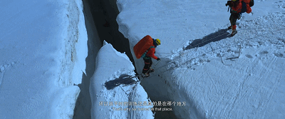 这是一个移动性冰川,它随时可能移动、断裂、错位、崩塌……穿行其中,周围是几十吨重的冰雪,一旦坍塌,必死无疑,冰梯、冰爪是必备,攀冰是基本操作。