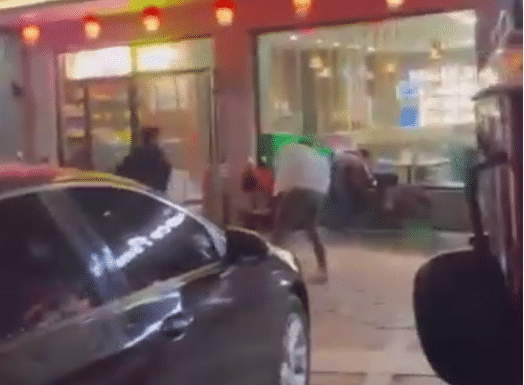 网传视频显示,在街道处,黑衣男子与白衣男子先是相互叫嚷,随后走到了一家饭店门口,黑衣男子手持长刀,砍向了白衣男子,白衣男子则抬起胳膊挡刀。此时饭店内有人出来关上店门。随后两人在饭店门口交涉,白衣男子右手流出鲜血,衣袖被染红,他称:“你想要弄死我?”持刀的黑衣男子扇了他一巴掌。随后白衣男子不停地说:“这个事情与我无关”,“跟我一毛钱关系没有”……