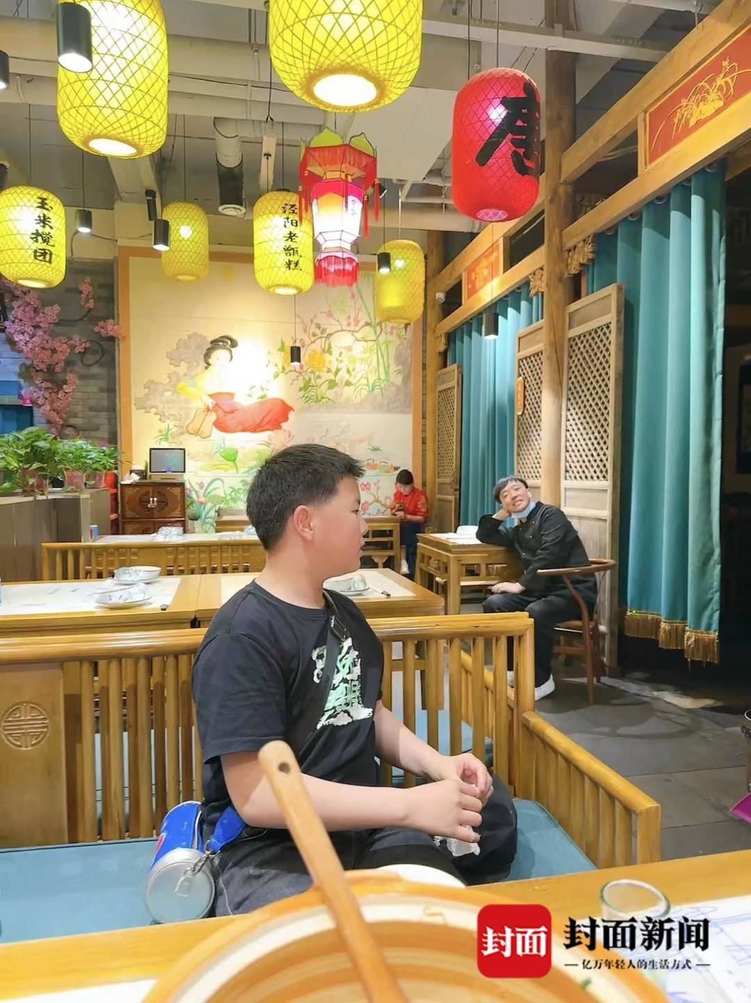 小李(左)与小陈在西安一餐厅内对诗的画面火爆全网