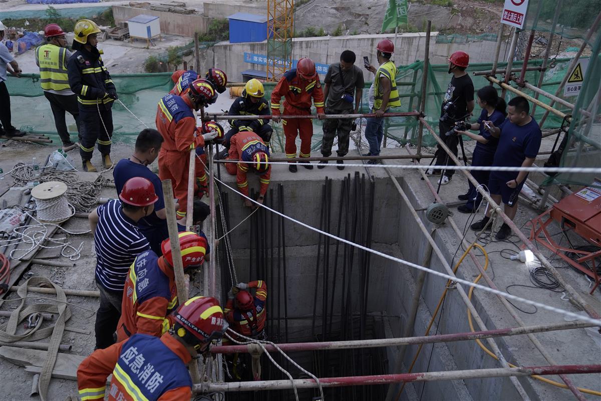 据了解,事发地位于巴南区南泉街道白鹤村新燕尾山隧道一标段,有3名工人在深井内搭建钢筋进行加固作业,作业过程中,由于横向支撑钢筋垮落,导致数吨钢筋结构性垮塌,3名作业工人被埋深井下29米处,其中一人被数十斤的钢筋卡住双脚不能动弹。
