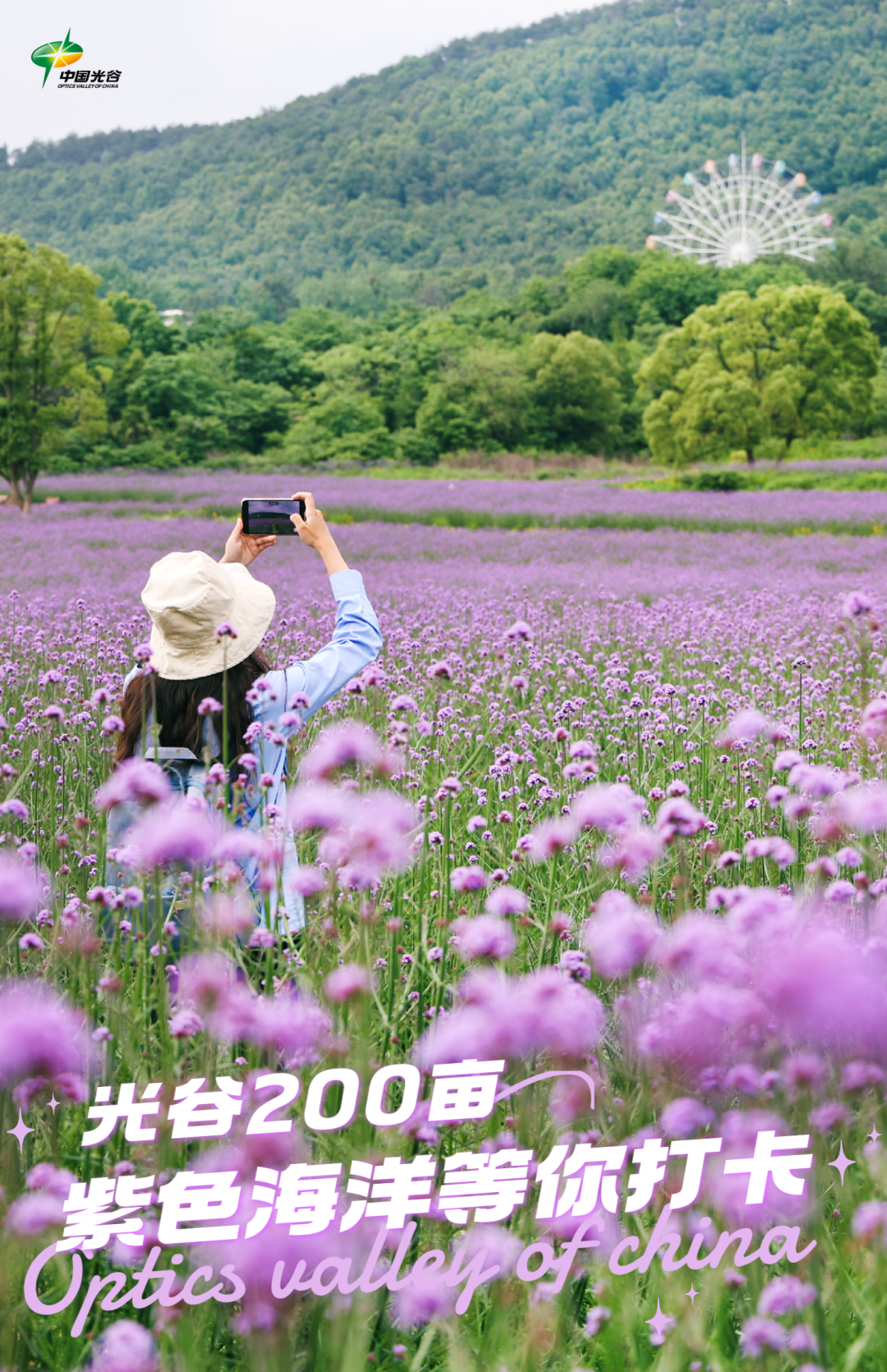 昨日立夏。随着夏日到来,九峰一路北侧,占地约14公顷的光谷网红花海,柳叶马鞭草提前10天盛放,吸引不少市民前来拍照打卡。