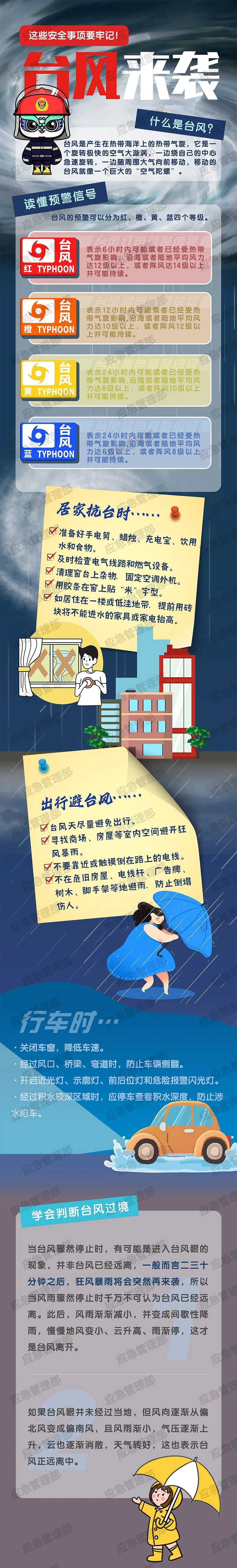 地震所带来的灾害是难以估量的 留给人们的自救时间很短 地震来袭不要慌 以下避险逃生应急知识要知道! 暴雨来袭如何应对 这份暴雨防灾指南请收好! 山洪如猛兽 常常让人防不胜防 洪涝来了怎么办? 台风天切勿随意出门 防御指南在这里! 火场瞬息万变 在有限的时间里 如何正确逃生? 快来一起了解学习 增强防灾减灾意识 提高应急避险水平 和家人一起学习应急知识 保护生命安全 来源:综合自湖北消防、中华人民共和国应急管理部