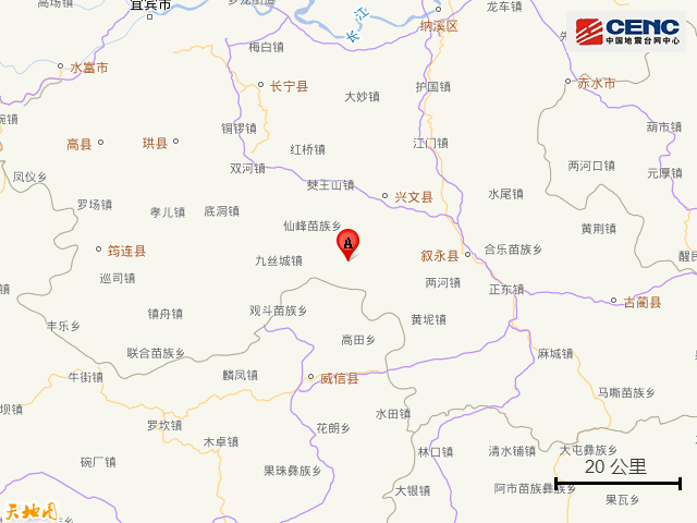 2023年5月5日20时33分,四川宜宾兴文县发生4.3级左右地震。