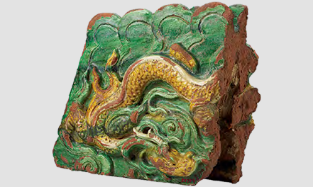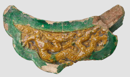 元代高等级建筑使用的龙纹瓦当、滴水,在元大都、元中都、元上都都有不少发现,其中以黄绿琉璃最为常见,也见有蓝绿黄琉璃。元人尚白,考古也曾发现白色瓷瓦或琉璃瓦。发现数量更多的是灰陶瓦件。元大都出土的瓦当、滴水,以花草纹、凤鸟纹、兽面纹为大宗。