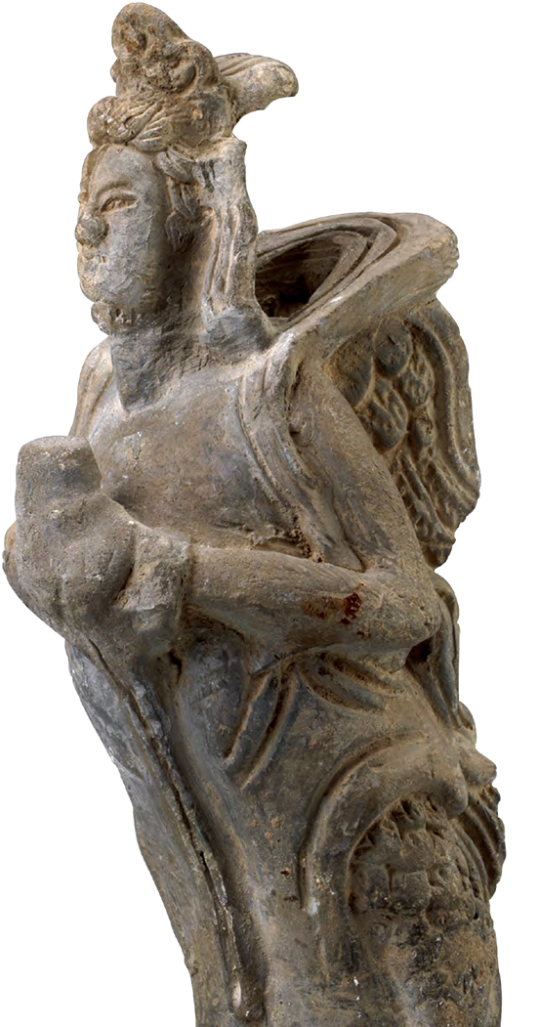 迦陵频伽(梵语音译)为佛教中一种鸟神,传说生于雪山,在蛋壳中即能鸣叫,其音和雅,听者无厌,故又名妙音鸟。迦陵频伽在《营造法式》一书中作“嫔伽”,屋檐转角处的嫔伽成为高等级建筑上常见的装饰部件。