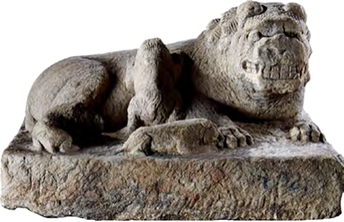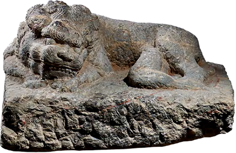 角石一般放置在古建筑台基转角处,既可保护台基,又有震慑、装饰和标志等级作用,常常是卧狮或母狮携幼狮造型。