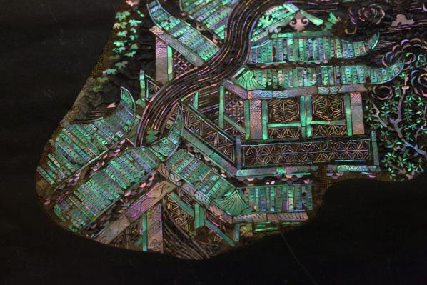 嵌螺钿广寒宫图漆器残片 首都博物馆藏