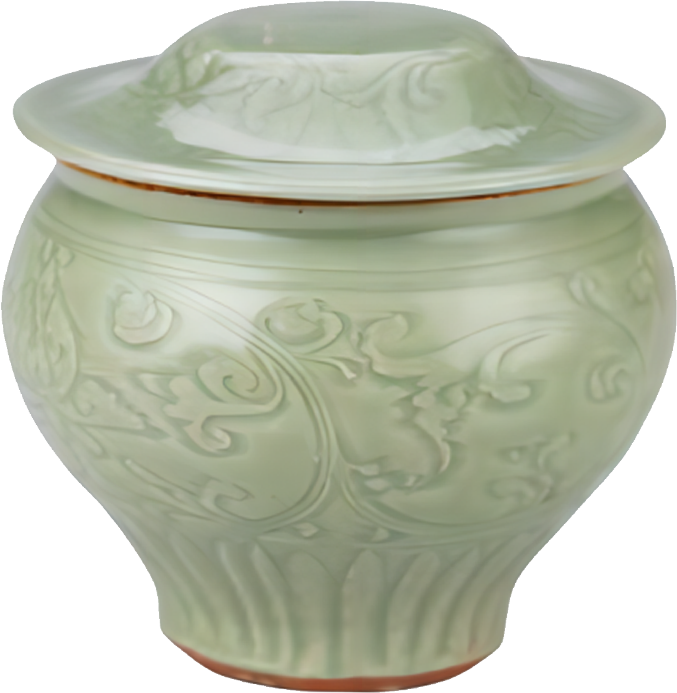青釉缠枝牡丹纹平顶盖罐 首都博物馆藏