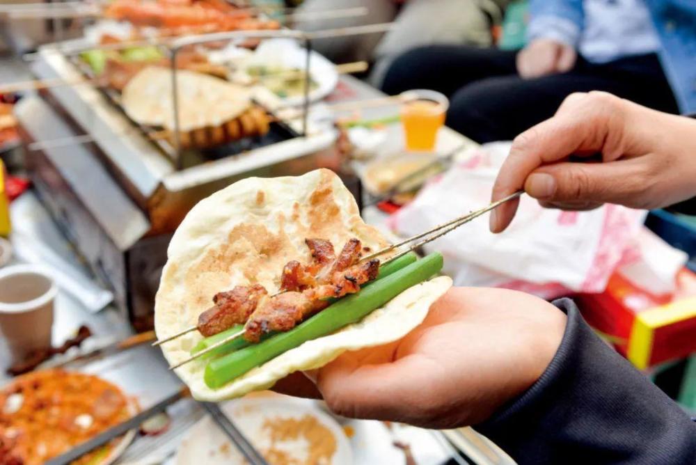 消费者在淄博体验“小饼、小炉加蘸料,灵魂烧烤三件套”。图/IC