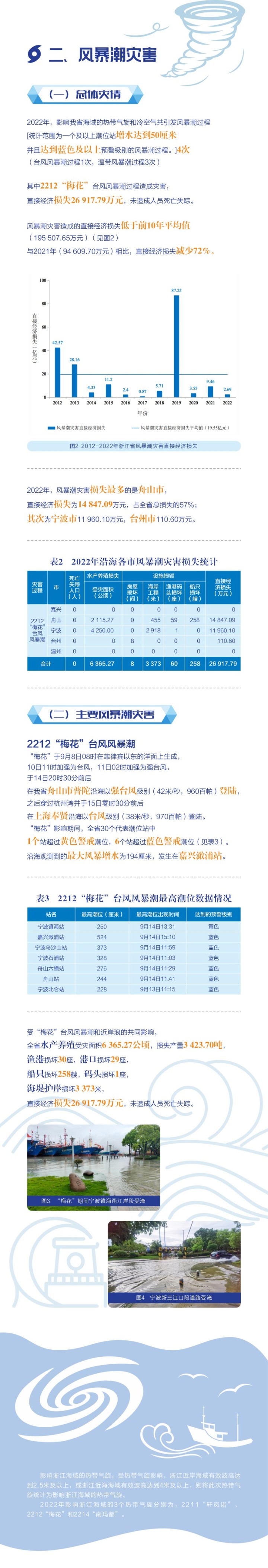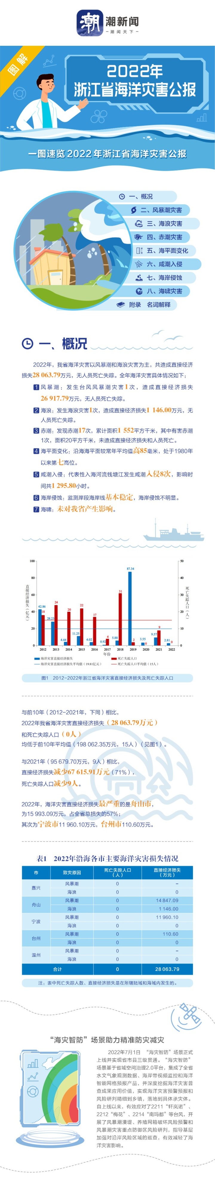 浙江是全国海洋灾害影响最为严重省份之一,2022年,浙江海洋灾害造成的直接经济损失2.8亿元,排全国第3。
