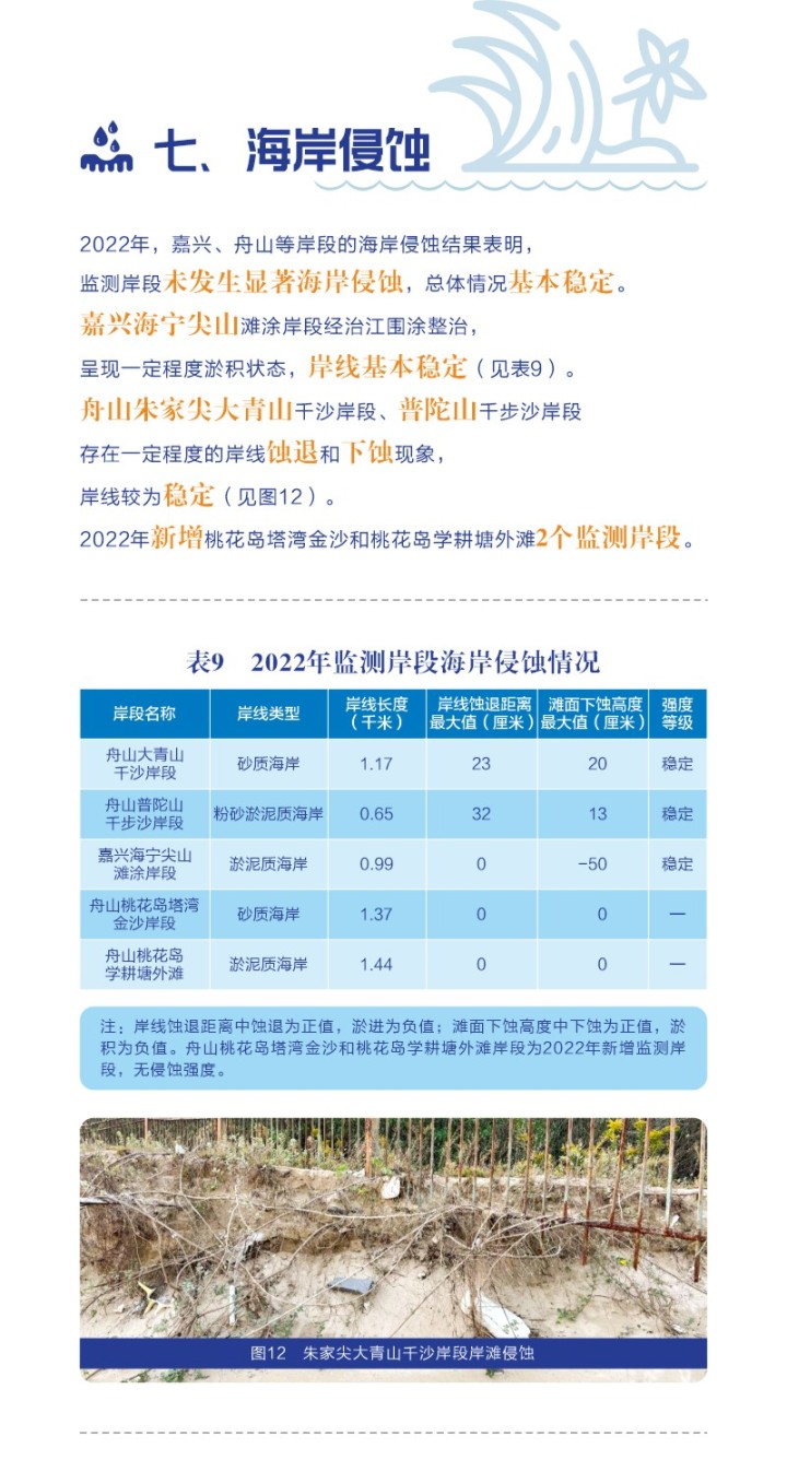 2022年,浙江沿海海平面较常年高85毫米,处于1980年以来第七高位。