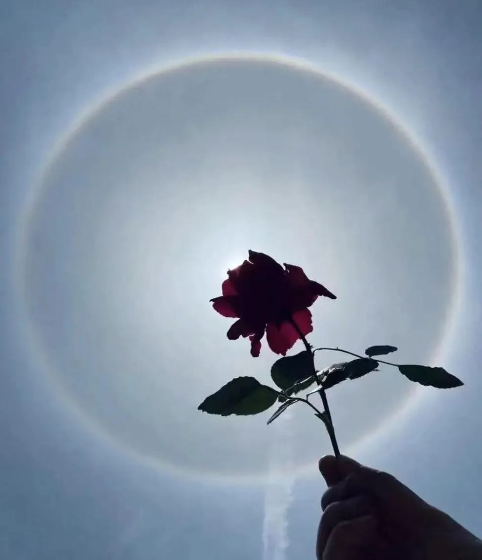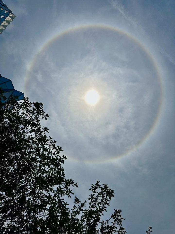 可以看到太阳周边有一圈彩虹好像给太阳带上了“美瞳”绚丽无比!!!