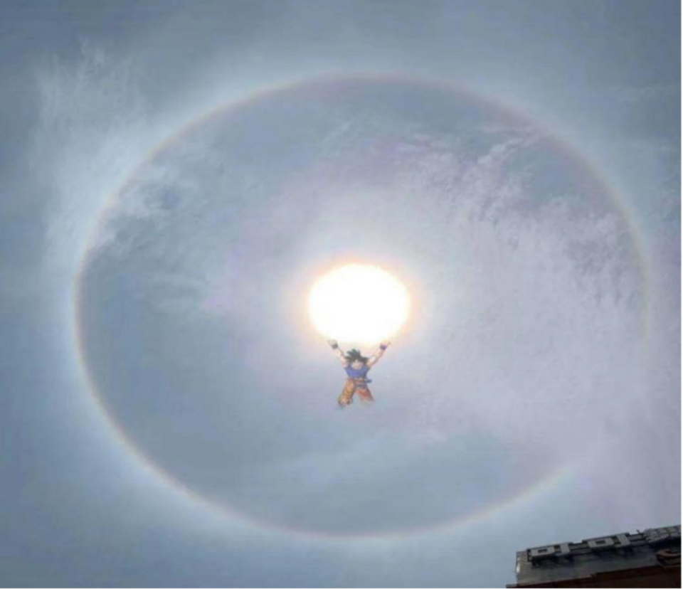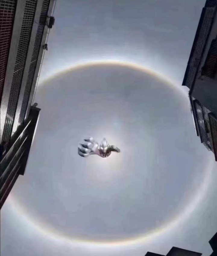 在网友发出晒图后纷纷有网友开始创作有网友喊话:“一定是奥特曼来接我了!”你相信光吗?”并配上P上了奥特曼的日晕图