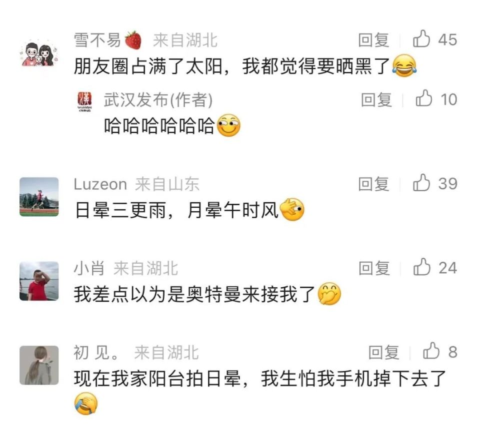 在小布发布了“自带光环”的日晕图集后网友们也纷纷跟小布留言让我们来看看大家的趣味留言吧~