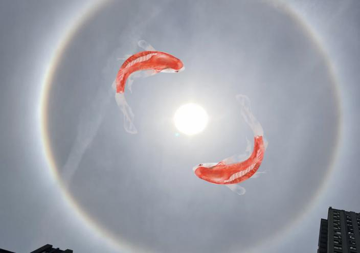 5月13日早上武汉上空出现难得一见的“日晕”景观引得不少网友在社交平台晒图记录下这壮观的一幕