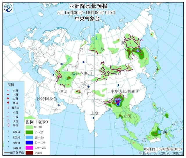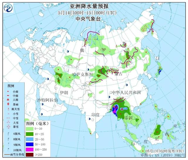 降雨预报:14日至15日,缅甸西北部、孟加拉国东部、印度东北部等地部分地区将有大到暴雨,局地有大暴雨或特大暴雨;我国西藏东南部和云南等地部分地区有中到大雨,局地有暴雨或大暴雨。