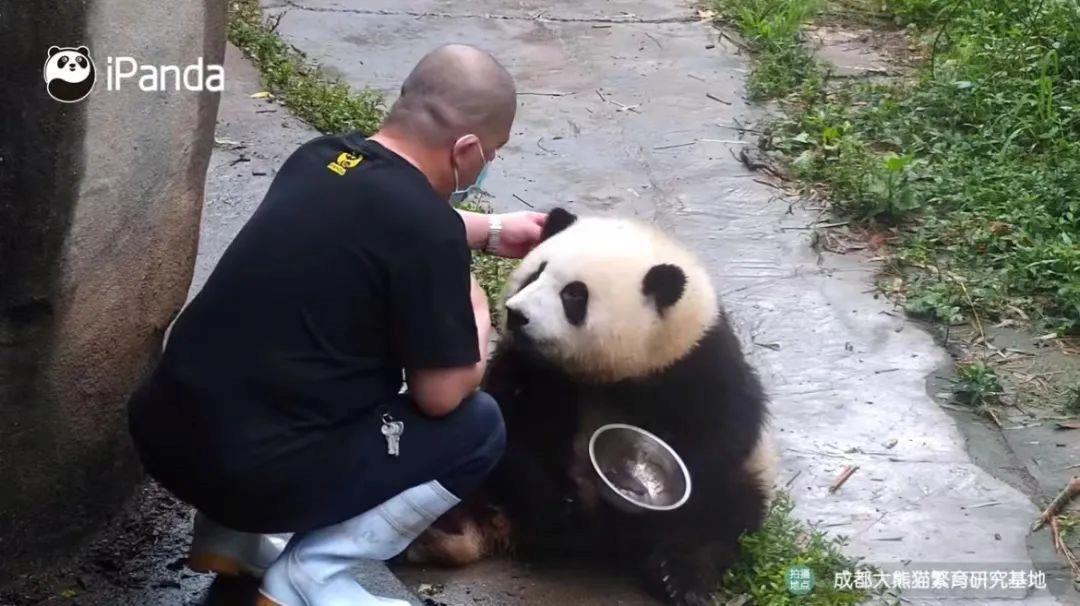 谭爷爷训练出来的大熊猫,体检时采血都不害怕。“我们用食物引导熊猫将手臂放在采血架,一边用美食吸引它的注意力,一边用目标棒触碰它的胳膊,慢慢习惯这种刺激后,等到真正采血就不会抵触了。”